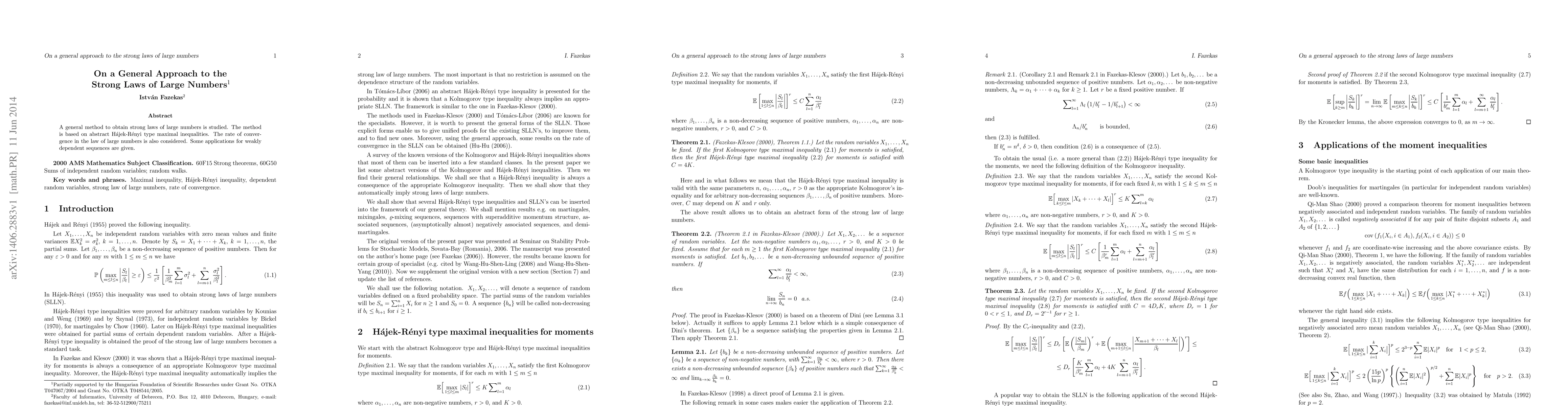 A general method to obtain strong laws of large numbers is studied. The method is based on abstract H\'ajek-R\'enyi type maximal inequalities. The rate of convergence in the law of large numbers is also considered. Some applications for weakly dependent sequences are given.