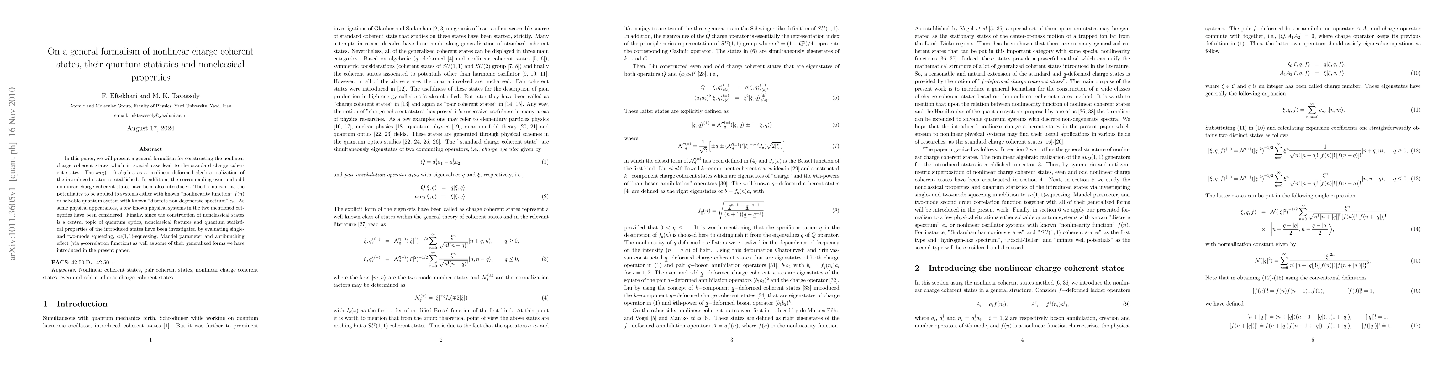 This paper develops a general formalism for constructing nonlinear charge coherent states, which can reduce to standard charge coherent states under certain conditions. The study explores their quantum statistics and nonclassical properties, evaluating features like squeezing, Mandel parameter, and antibunching effects.