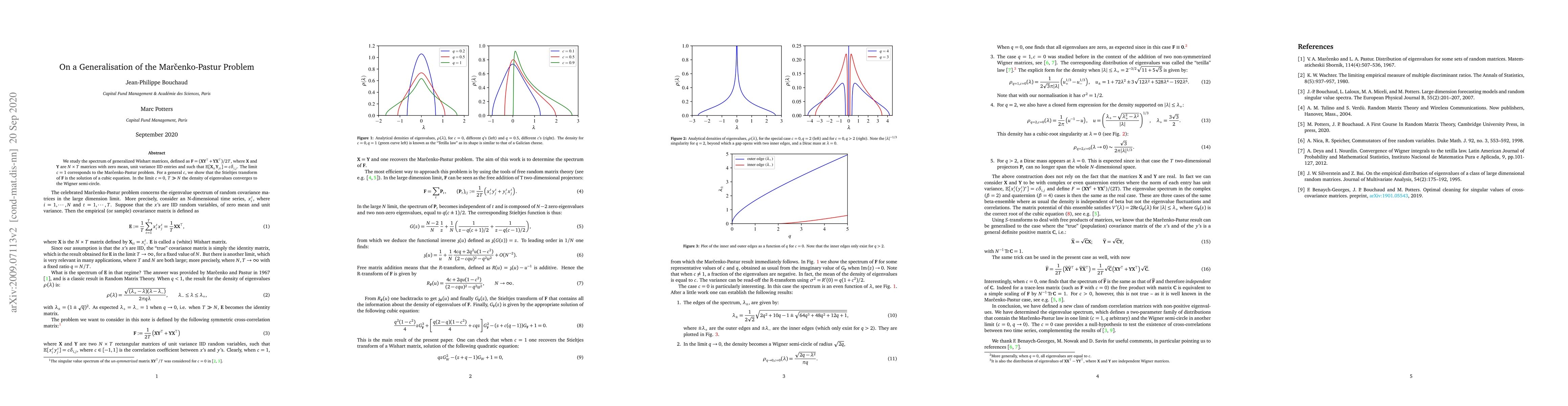 Researchers generalize the Marcenko-Pastur problem to study the spectrum of generalized Wishart matrices, finding that the Stietjes transform is a cubic equation solution for non-zero expectation values, with a limiting case converging to the Wigner semi-circle.