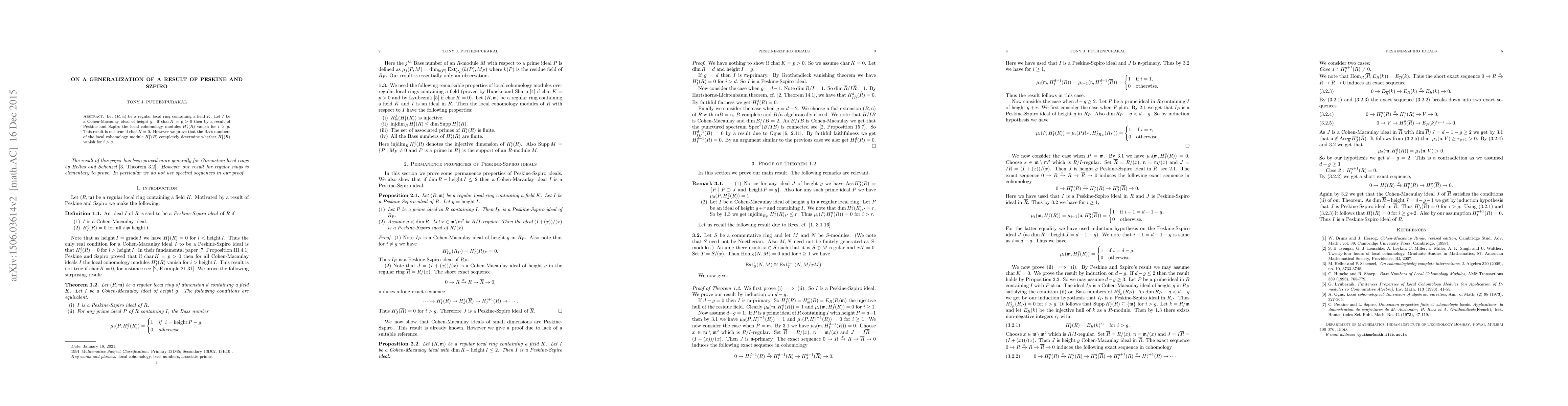 This paper generalizes a result by Peskine and Szpiro on local cohomology modules in positive characteristic. It shows that the vanishing of local cohomology modules $H^i_I(R)$ for $i > g$ depends on the Bass numbers of $H^g_I(R)$ when the characteristic of the field is zero.