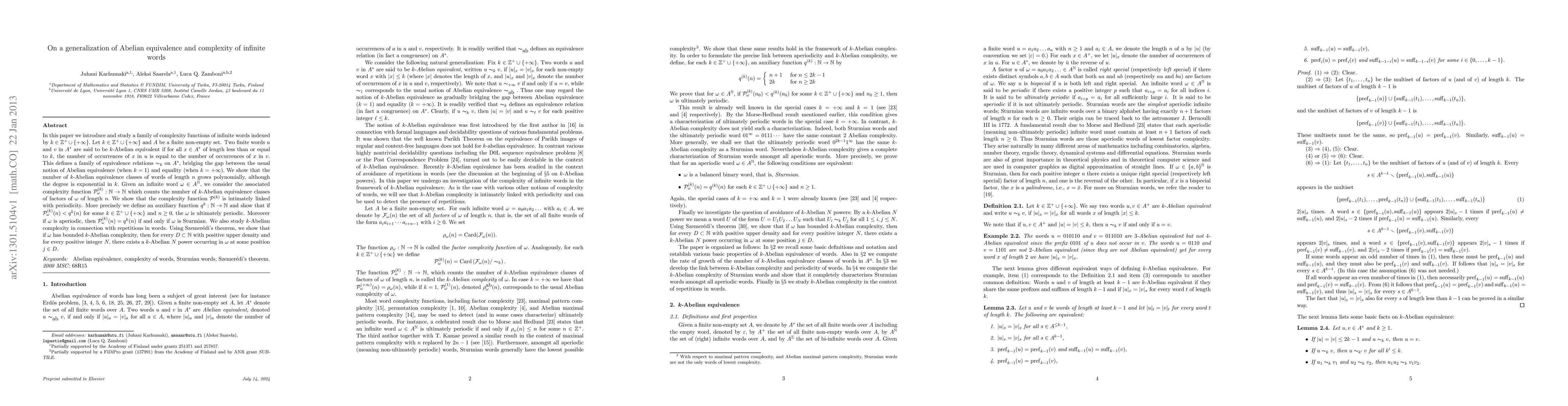 Abelian equivalence (when $k=1$) and equality (when $k=+\infty).$ We show that
