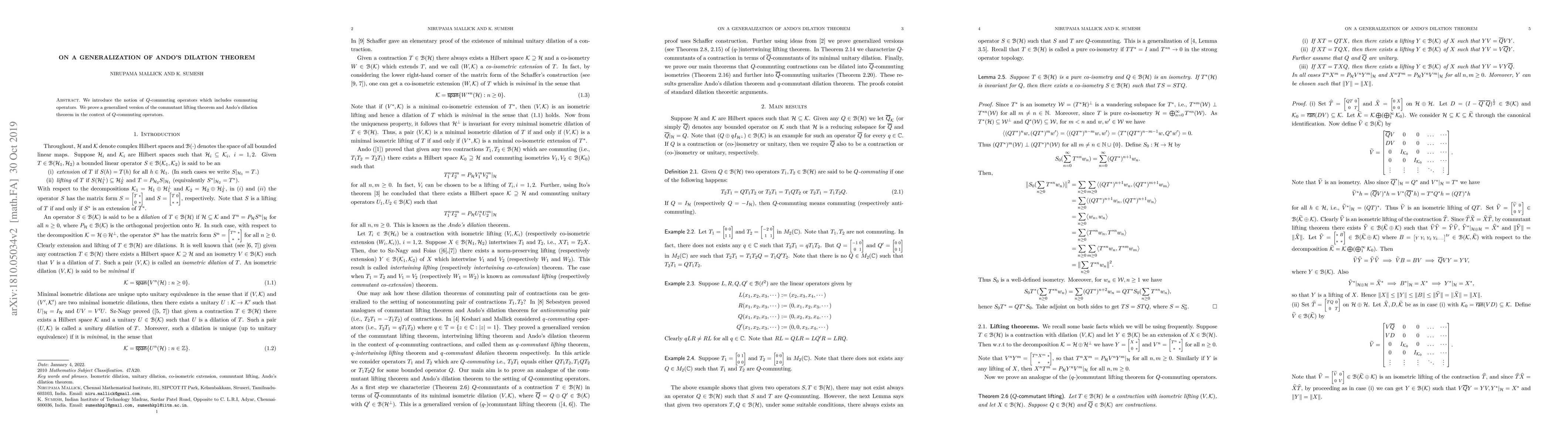We introduce the notion of $Q$-commuting operators which is a generalization of commuting operators. We prove a generalized version of commutant lifting theorem and Ando's dilation theorem in the context of $Q$-commuting operators.