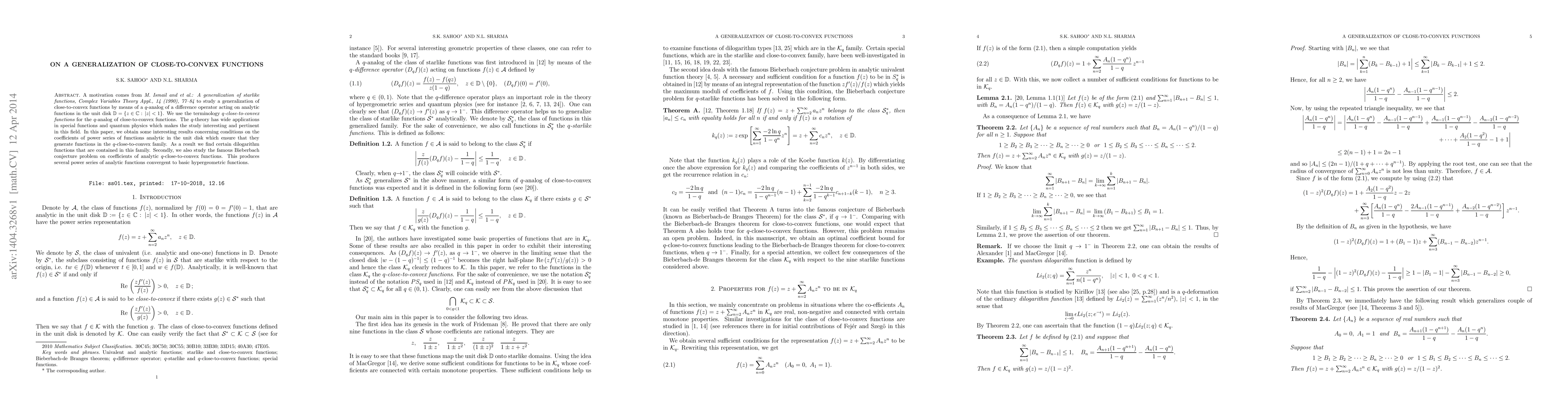 This paper generalizes the concept of close-to-convex functions using a $q$-analog of a difference operator, termed $q$-close-to-convex functions, and explores their properties and coefficient conditions. It also investigates the Bieberbach conjecture for these functions, leading to connections with basic hypergeometric functions.