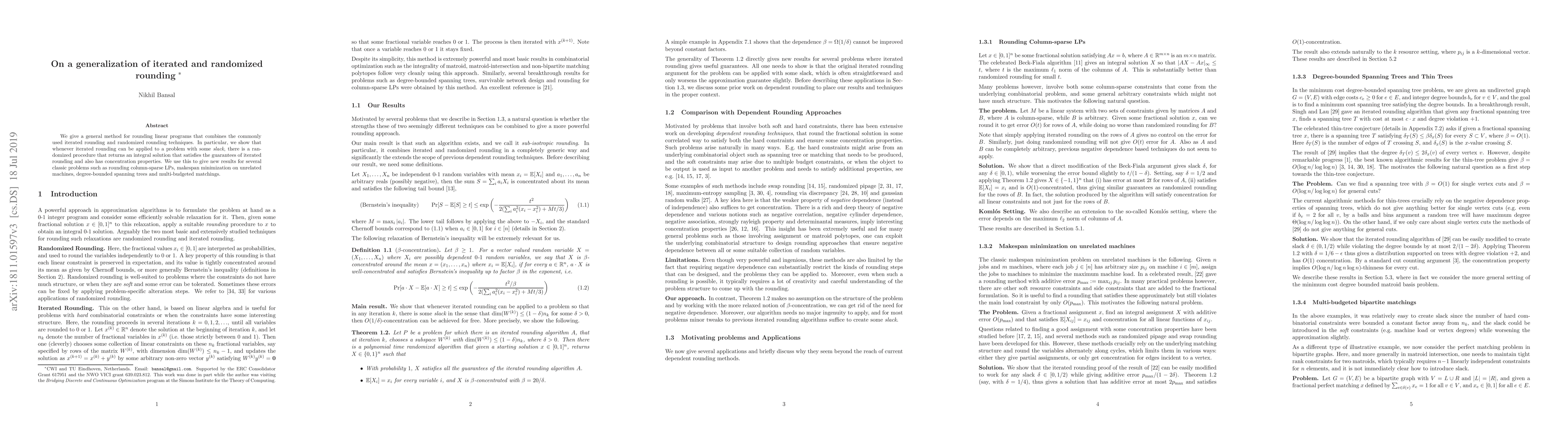 This paper presents a novel method for rounding linear programs by integrating iterated and randomized rounding techniques, ensuring integral solutions with guarantees and concentration properties for classic problems where iterated rounding has been effective.