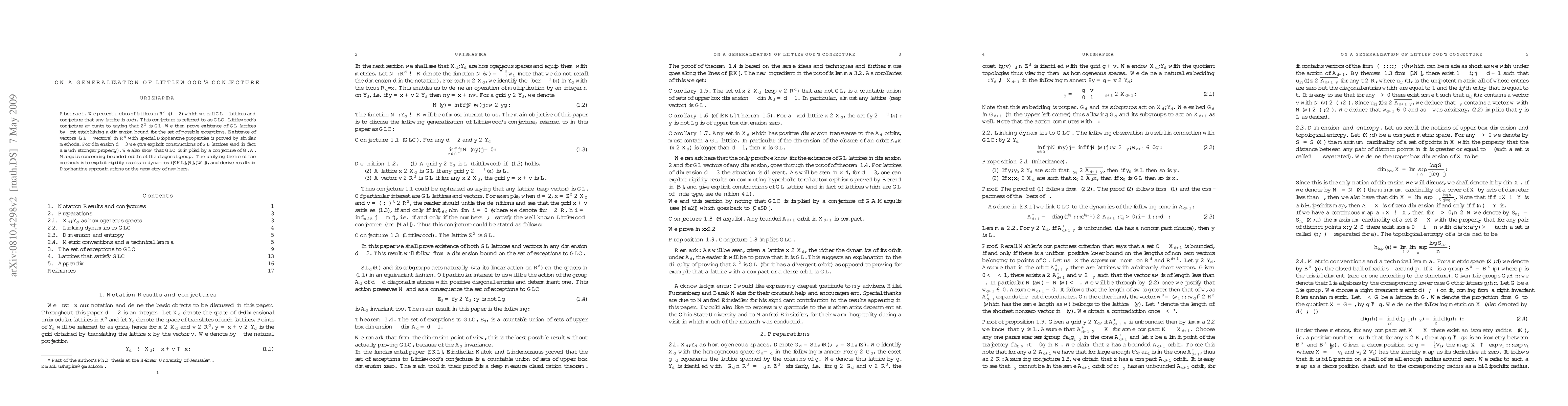 This paper proposes a generalization of Littlewood's conjecture by introducing GL-lattices in R^d (d >= 2), suggesting that any lattice could be a GL-lattice (GLC). It proves the existence of GL lattices through dimension bounds and constructions for d >= 3, utilizing rigidity results from dynamics.