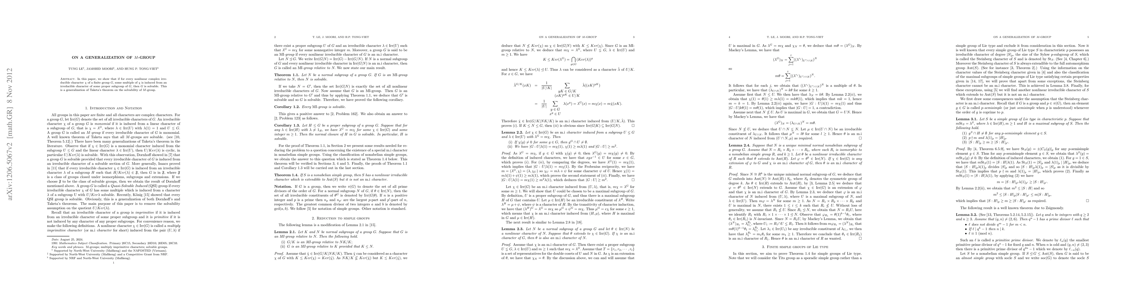 In this paper, we will show that if for every nonlinear complex irreducible character of a finite group G, some multiple of it is induced from an irreducible character of some proper subgroup of G, then G is solvable. This is a generalization of Taketa's Theorem on the solvability of M-group.