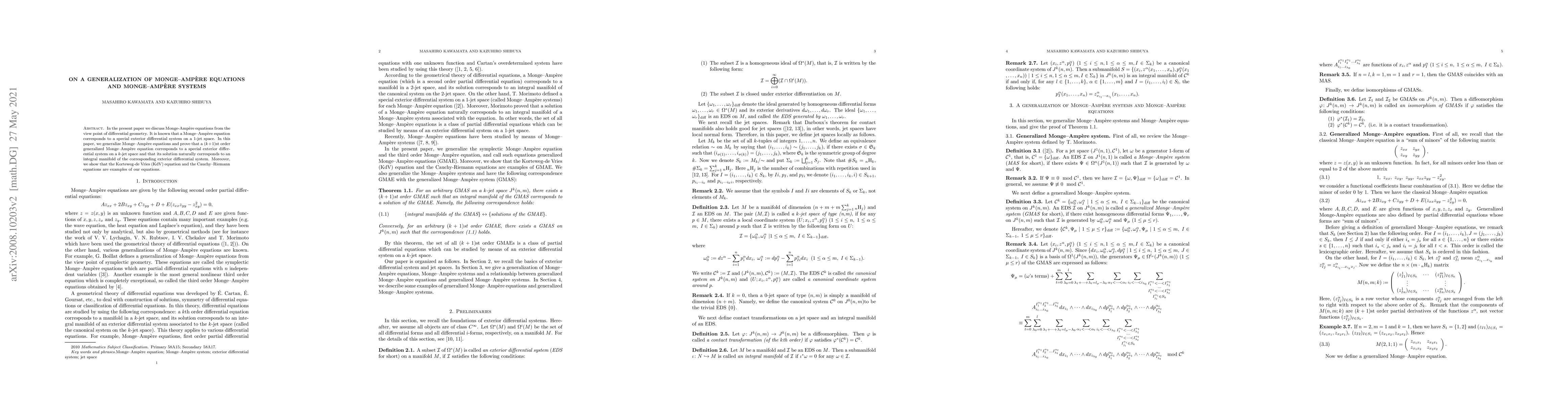 This paper generalizes Monge-Ampère equations by extending them to higher-order differential systems on $k$-jet spaces, establishing their correspondence to special exterior differential systems. It also identifies the KdV and Cauchy-Riemann equations as examples of these generalized forms.