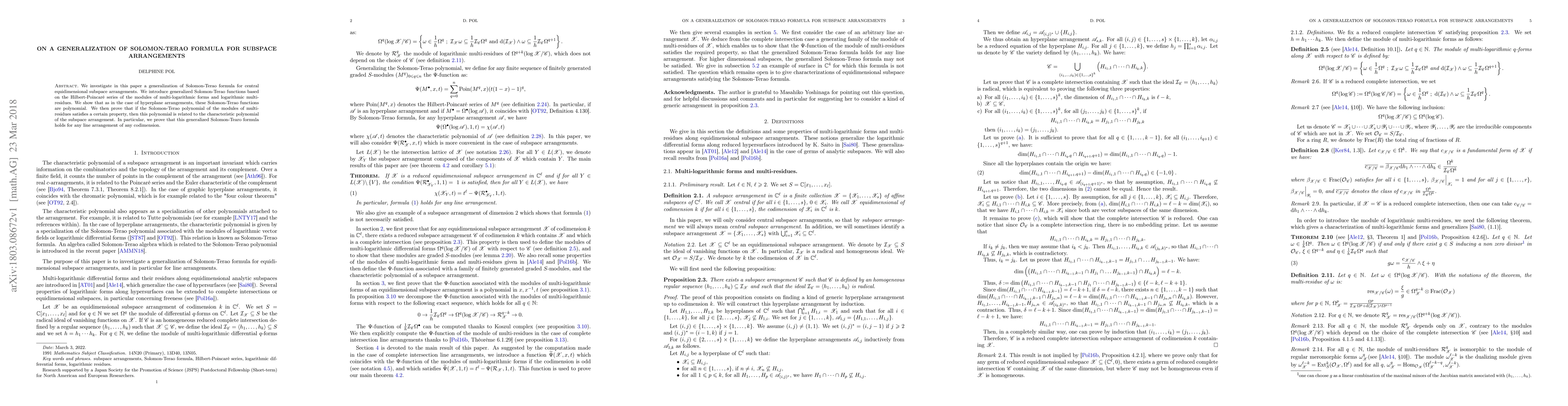 This paper generalizes the Solomon-Terao formula for central equidimensional subspace arrangements, introducing generalized Solomon-Terao functions linked to multi-logarithmic forms. It proves that these functions are polynomials and relates them to the characteristic polynomial of the subspace arrangement under specific conditions.