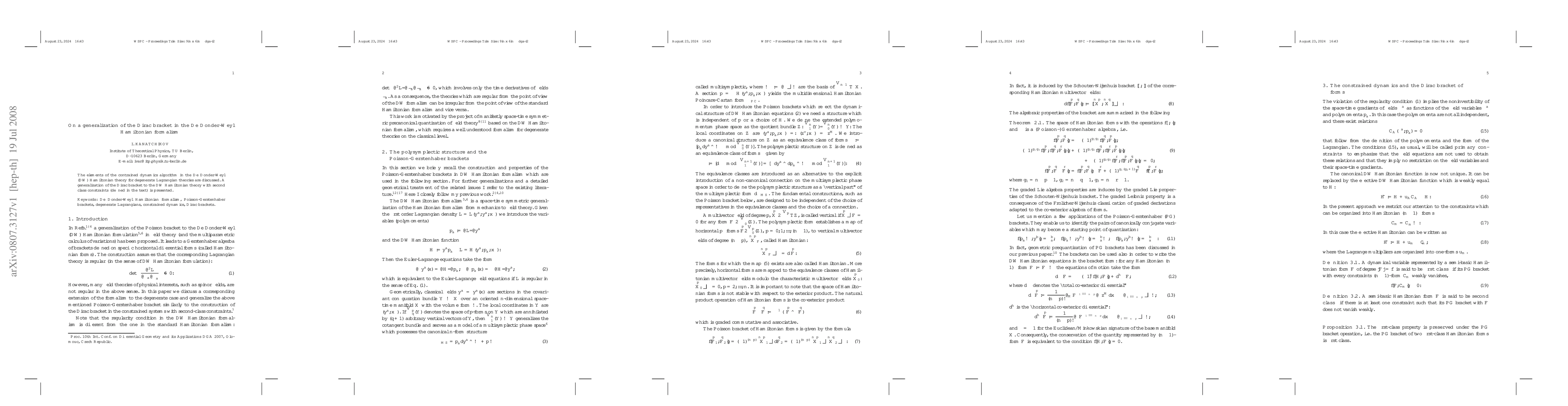 The research presents a generalization of the Dirac bracket in the De Donder-Weyl Hamiltonian formalism for degenerate Lagrangian theories, introducing a new Poisson-Gerstenhaber (PG) bracket structure.