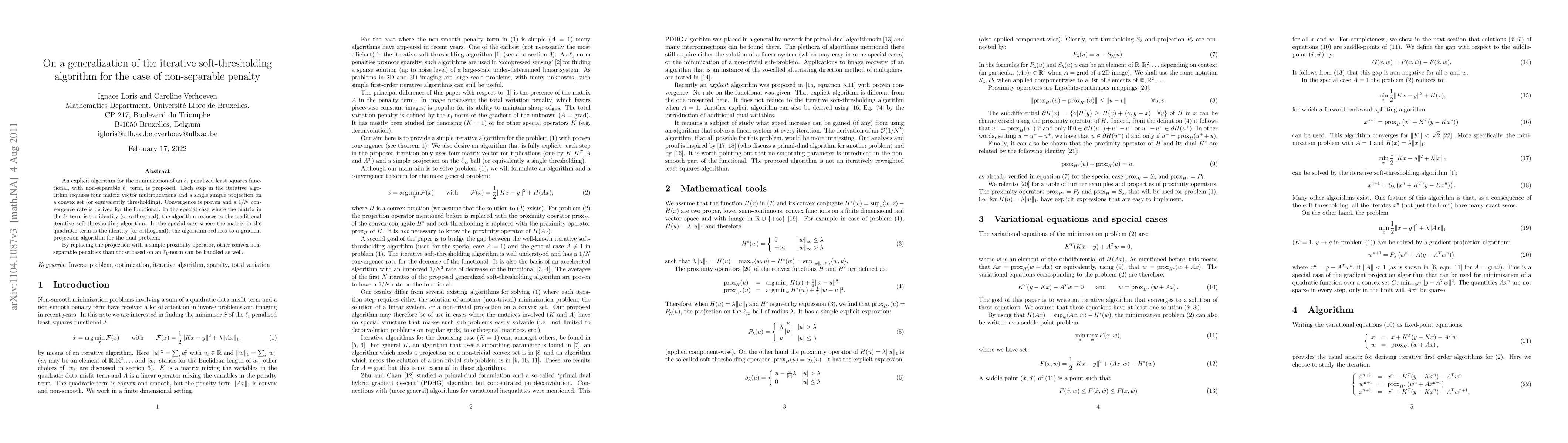 This paper proposes an iterative algorithm for minimizing an $\ell_1$ penalized least squares functional with a non-separable $\ell_1$ term. The algorithm converges at a rate of 1/N and can handle various convex non-separable penalties beyond $\ell_1$-norms.