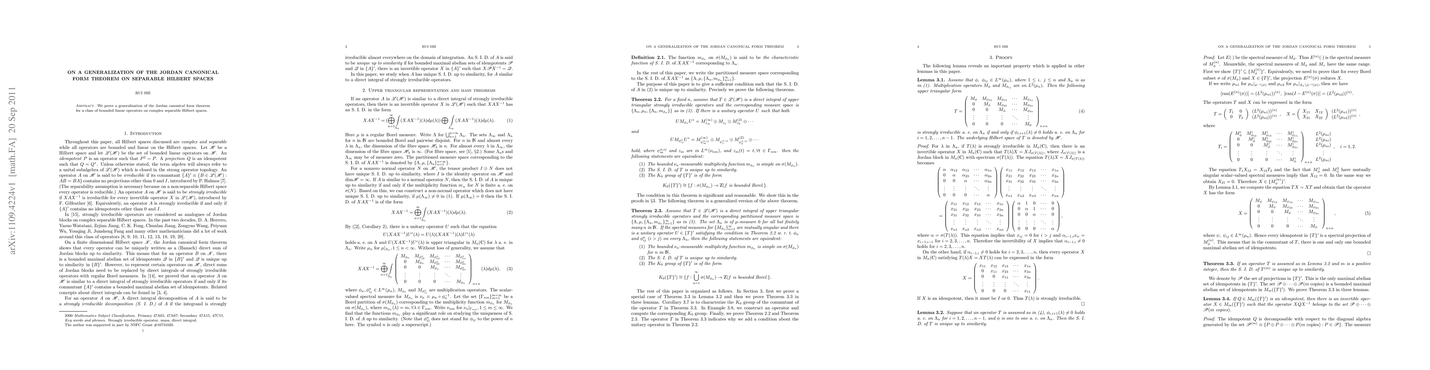 Summary: This paper generalizes the Jordan canonical form theorem to a class of bounded linear operators on complex separable Hilbert spaces, extending its applicability beyond finite-dimensional vector spaces. The proof provides a new framework for understanding operator behavior in infinite-dimensional settings.