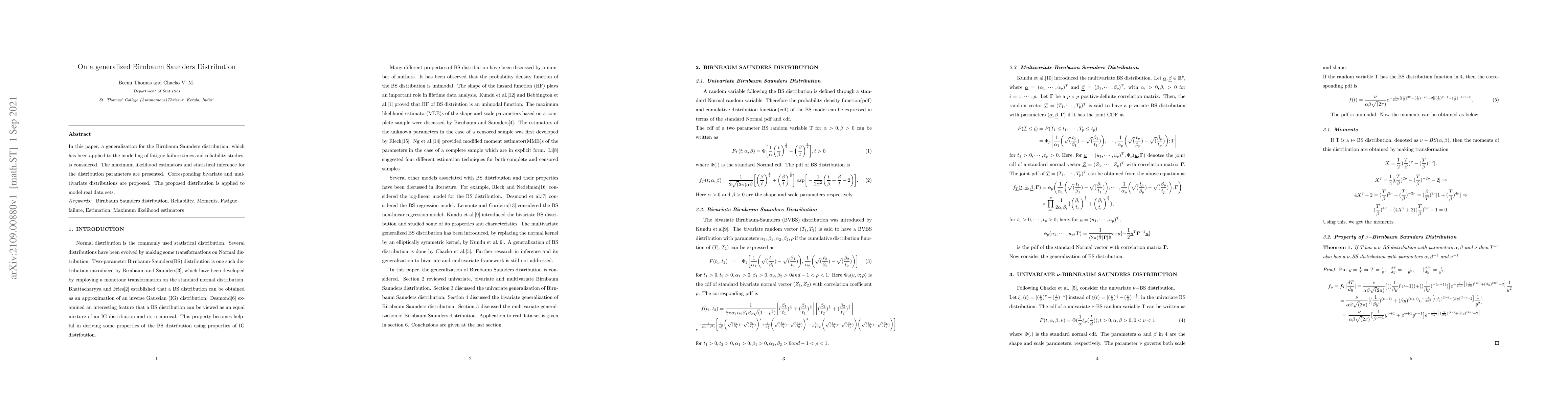 This paper generalizes the Birnbaum Saunders distribution, presenting maximum likelihood estimators and statistical inference for its parameters. It also introduces corresponding bivariate and multivariate distributions and applies the proposed model to real data sets.