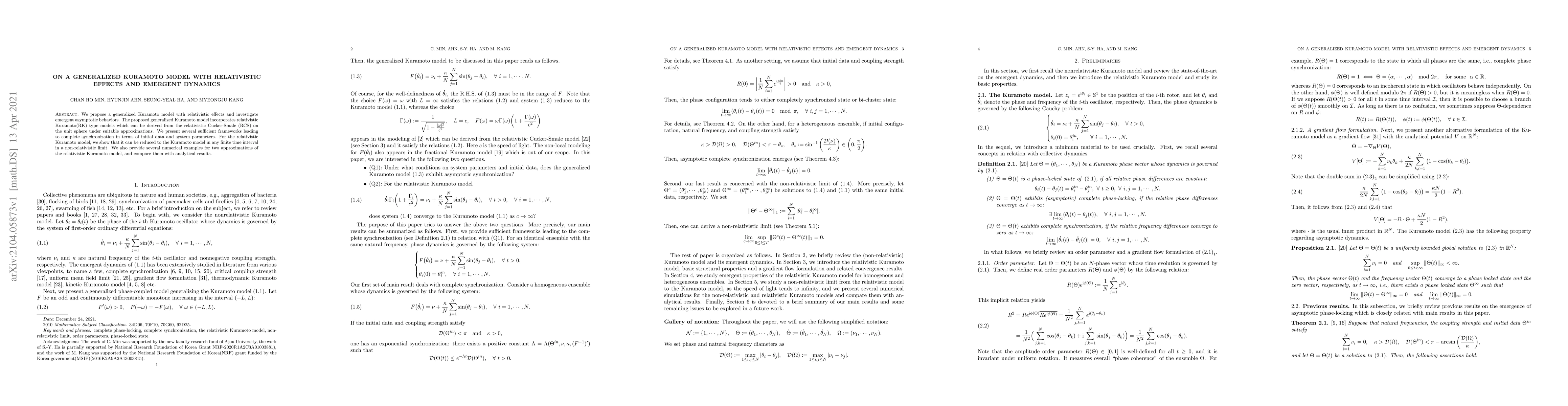 This paper proposes a generalized Kuramoto model incorporating relativistic effects and explores its emergent dynamics. It demonstrates complete synchronization under certain conditions and shows that the relativistic model reduces to the classical Kuramoto model in a non-relativistic limit, supported by numerical examples and analytical comparisons.