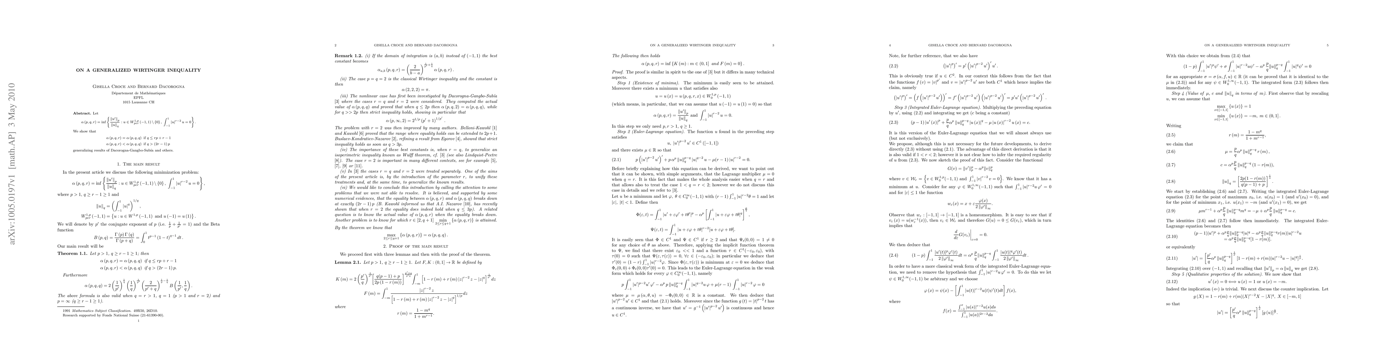 Summary: This paper explores a generalized version of the Wirtinger inequality, providing new insights and extending the classical results to broader contexts. The findings contribute to the understanding of inequalities in mathematical analysis and their applications.