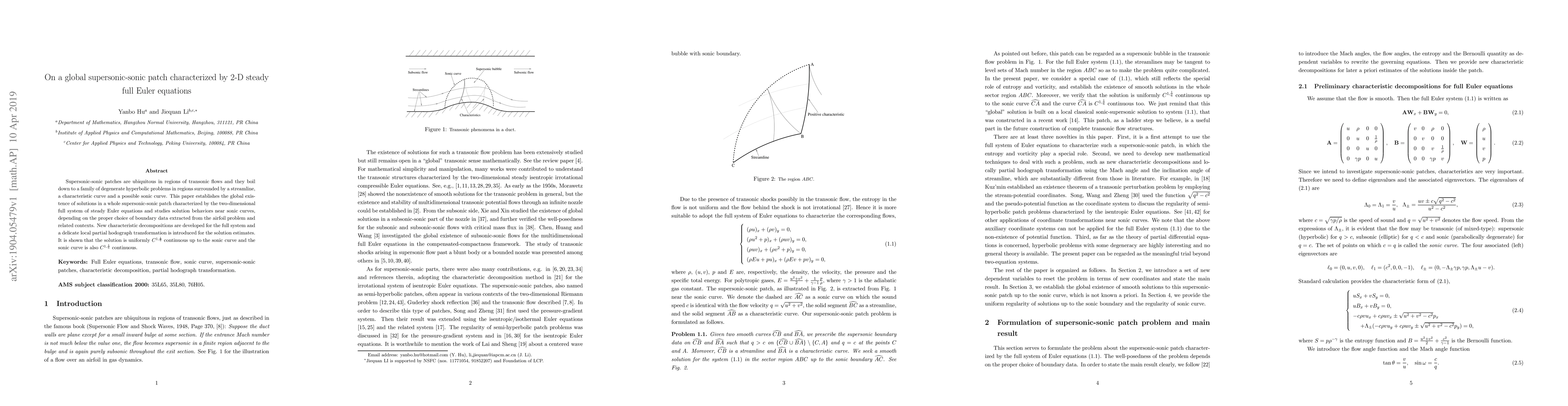 Researchers prove the global existence of solutions for supersonic-sonic patches in transonic flows, showing they remain C^1,1/6 continuous up to sonic curves.