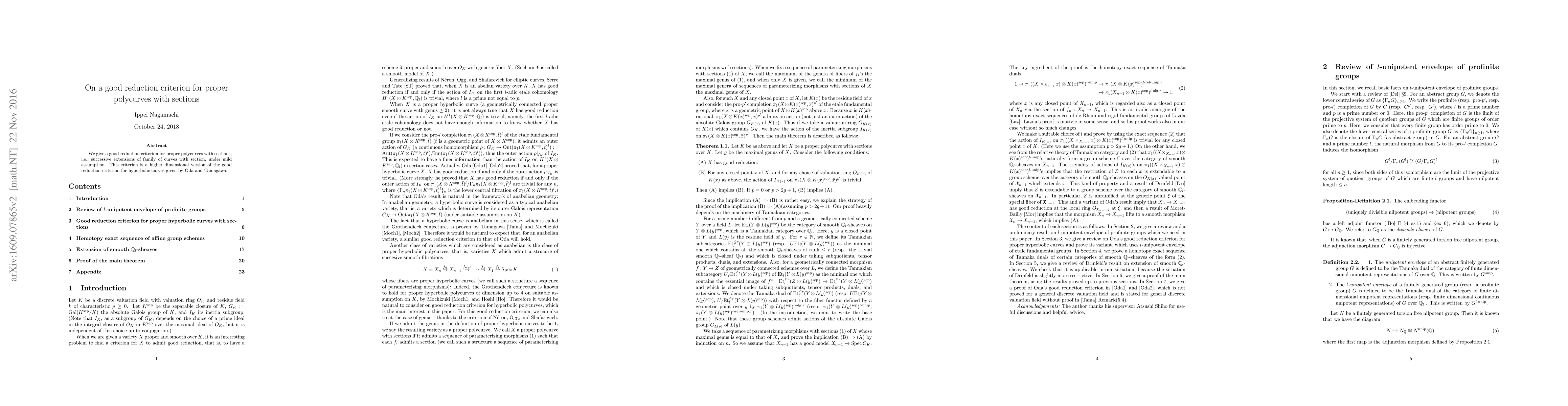 This paper presents a criterion for good reduction of proper polycurves with sections, extending Oda and Tamagawa's criterion for hyperbolic curves to higher dimensions under mild assumptions.