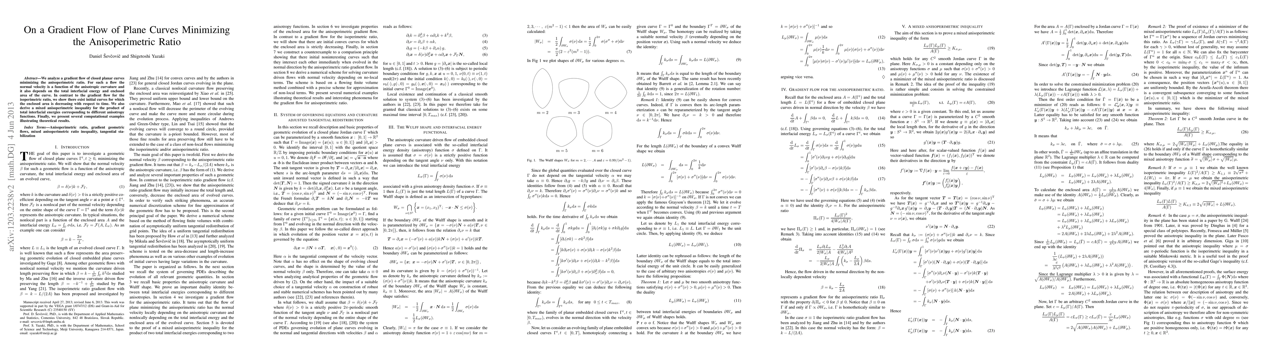 Researchers study gradient flows of closed planar curves minimizing anisoperimetric ratio, finding some curves' enclosed areas decrease over time, and deriving a mixed anisoperimetric inequality.