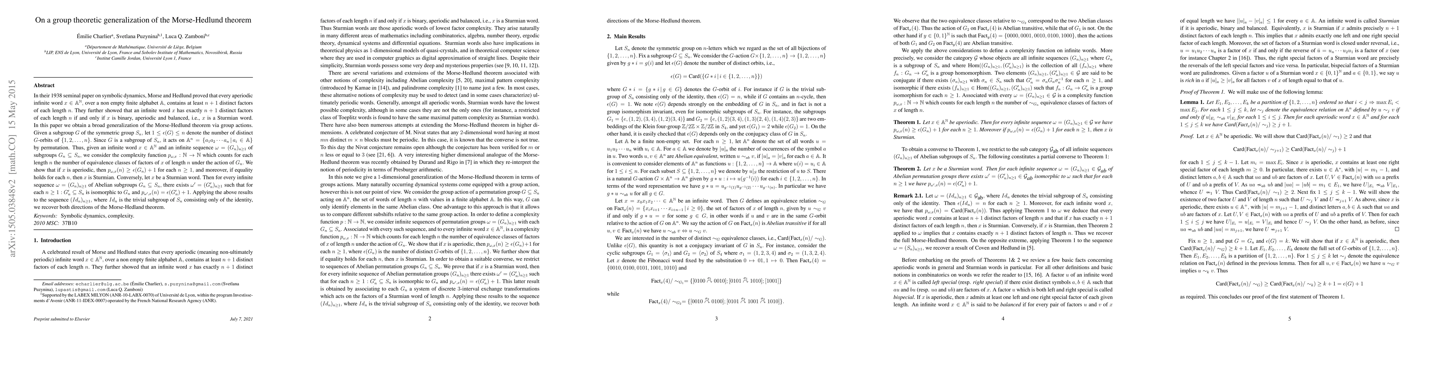 This paper generalizes the Morse-Hedlund theorem using group actions, showing that an infinite aperiodic word contains at least $\epsilon(G_n)+1$ distinct $G_n$-factors for each length $n$, where $\epsilon(G_n)$ denotes the number of $G_n$-orbits. It establishes that if this lower bound is met for all $n$, the word is Sturmian.