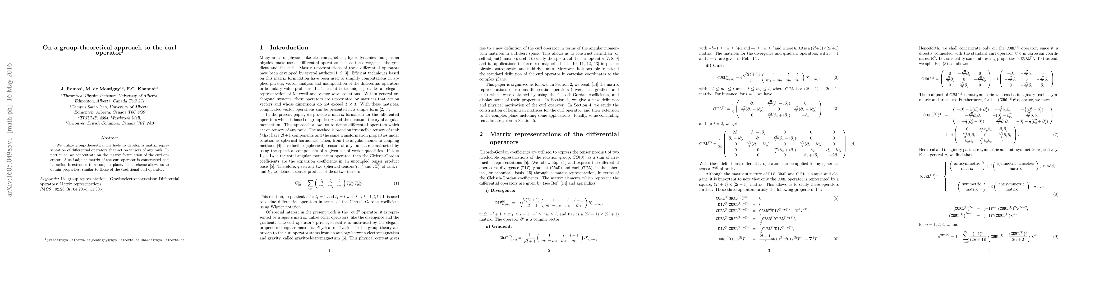 Researchers developed a group-theoretical approach to represent the curl operator as a matrix representation of differential operators acting on tensors. This allows for similar properties to be obtained in complex spaces.