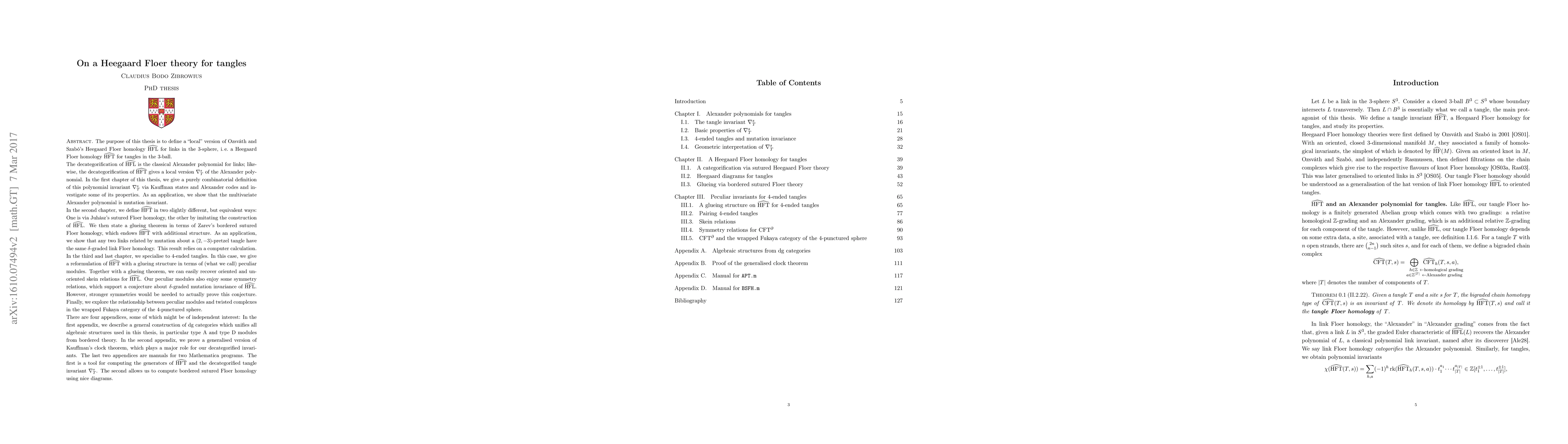 This thesis introduces a "local" version of Heegaard Floer homology for tangles, termed $\operatorname{\widehat{HFT}}$, alongside its decategorified invariant $\nabla_T^s$. It proves a gluing theorem using Zarev's bordered sutured Floer homology and explores symmetry properties supporting $\delta$-graded mutation invariance.