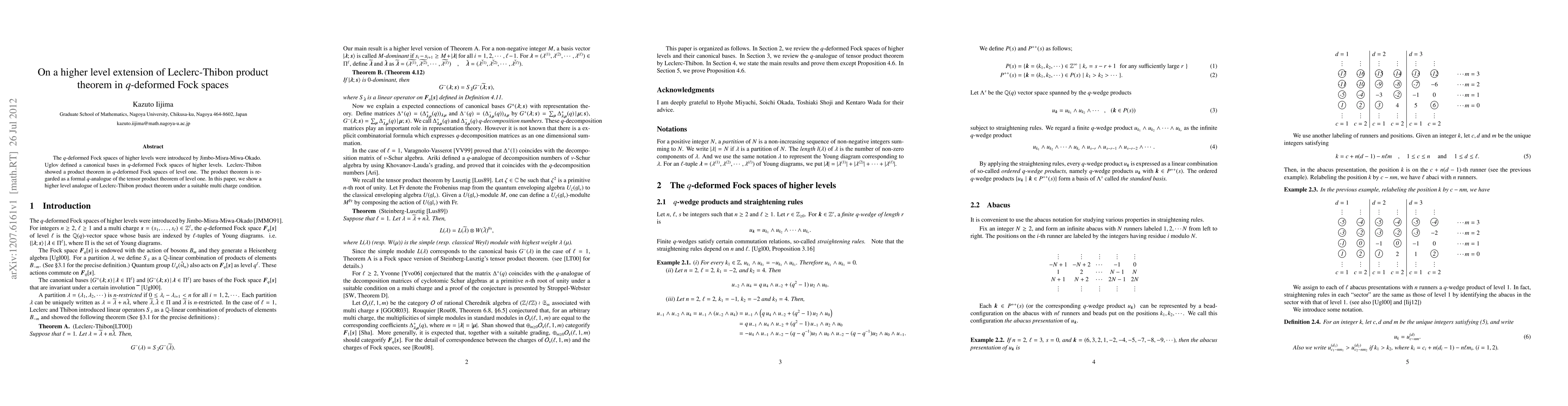 This paper extends the Leclerc-Thibon product theorem to higher levels in q-deformed Fock spaces, providing a formal $q$-analog of the tensor product theorem and under a specific multi-charge condition. The study builds on prior work defining canonical bases in higher level q-deformed Fock spaces.