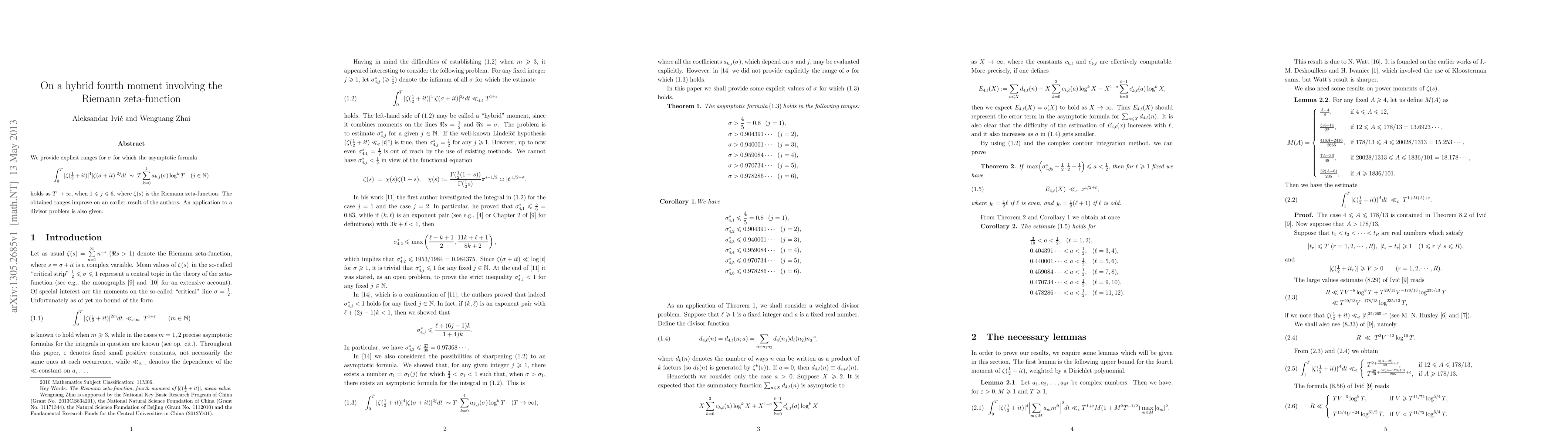 We provide explicit ranges for $\sigma$ for which the asymptotic formula \begin{equation*} \int_0^T|\zeta(1/2+it)|^4|\zeta(\sigma+it)|^{2j}dt \;\sim\; T\sum_{k=0}^4a_{k,j}(\sigma)\log^k T \quad(j\in\mathbb N) \end{equation*} holds as $T\rightarrow \infty$, when $1\leq j \leq 6$, where $\zeta(s)$ is the Riemann zeta-function. The obtained ranges improve on an earlier result of the authors [Annales Univ. Sci. Budapest., Sect. Comp. {\bf38}(2012), 233-244]. An application to a divisor problem is also given