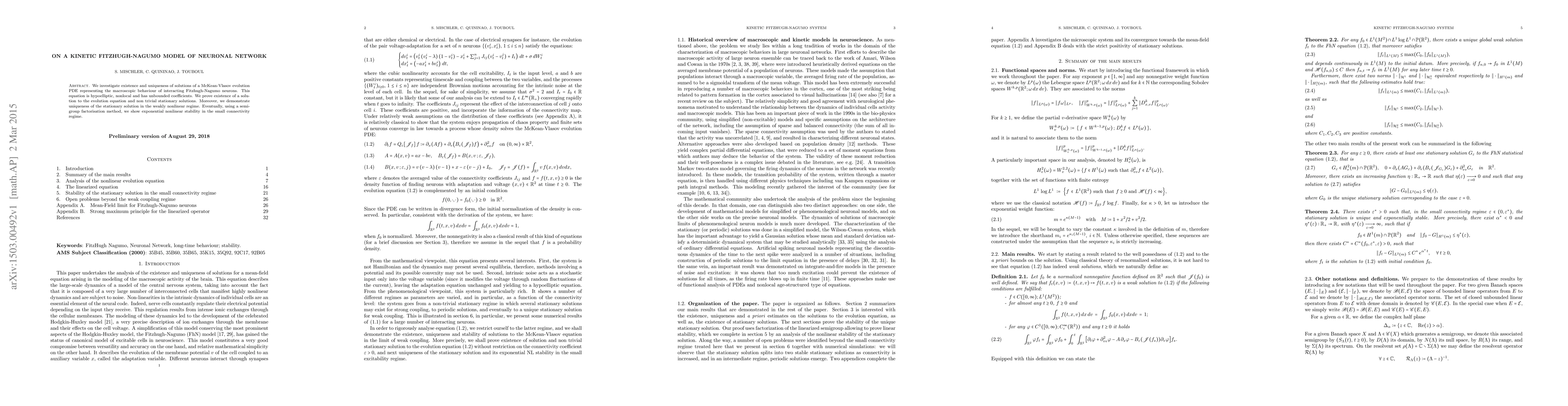 The paper investigates a McKean-Vlasov model of interacting Fitzhugh-Nagumo neurons, proving existence and uniqueness of solutions in the weakly nonlinear regime and demonstrating exponential nonlinear stability for small connectivity.