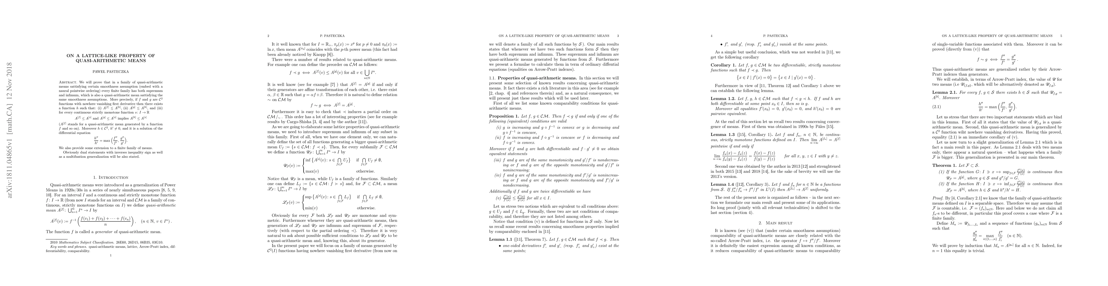 This paper proves that quasi-arithmetic means satisfying certain smoothness conditions form a lattice, where every finite family has both supremum and infimum, also a quasi-arithmetic mean. It provides a specific function $h$ that serves as the supremum for given means $f$ and $g$, and satisfies a particular differential equation.