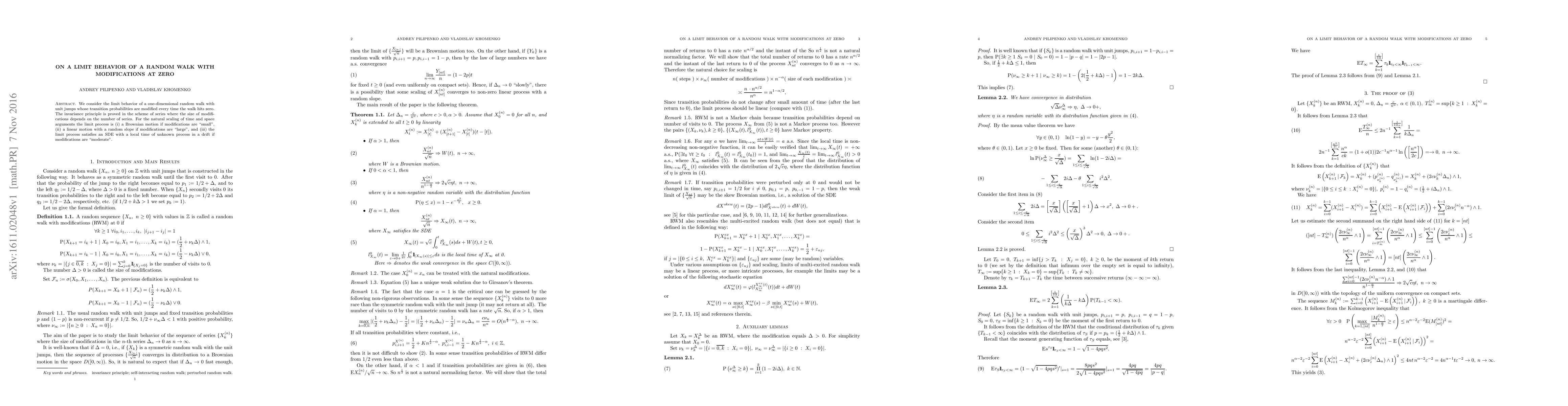We consider the limit behavior of a one-dimensional random walk with unit jumps whose transition probabilities are modified every time the walk hits zero. The invariance principle is proved in the scheme of series where the size of modifications depends on the number of series. For the natural scaling of time and space arguments the limit process is (i) a Brownian motion if modifications are "small", (ii) a linear motion with a random slope if modifications are "large", and (iii) the limit process satisfies an SDE with a local time of unknown process in a drift if modifications are "moderate".