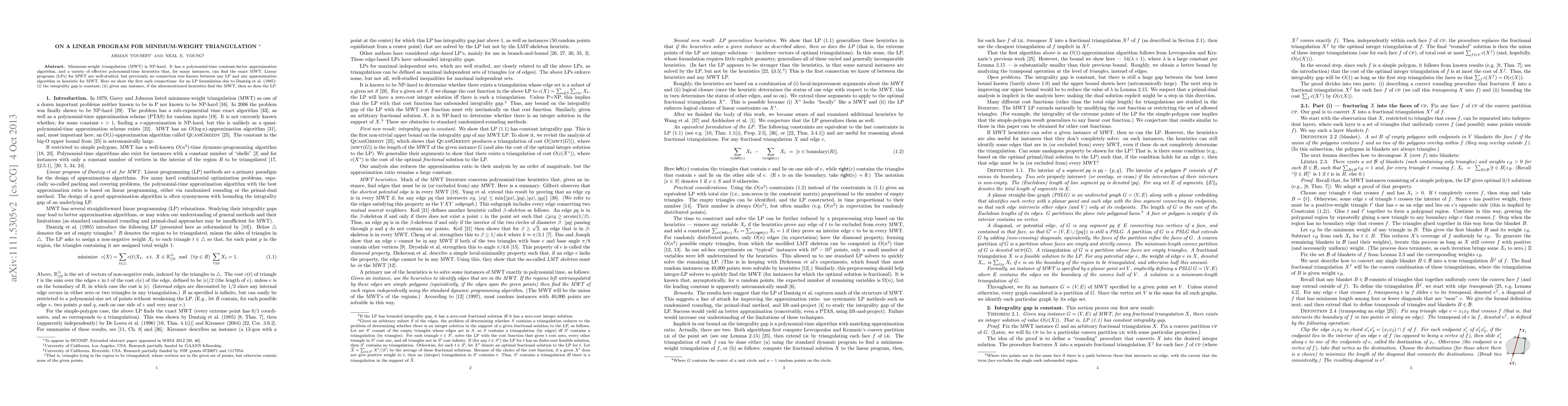 This paper establishes the first connections between a linear program (LP) for minimum-weight triangulation (MWT) and both approximation algorithms and heuristics. It shows that the LP by Dantzig et al. has a bounded integrality gap and can find the MWT when effective heuristics do.