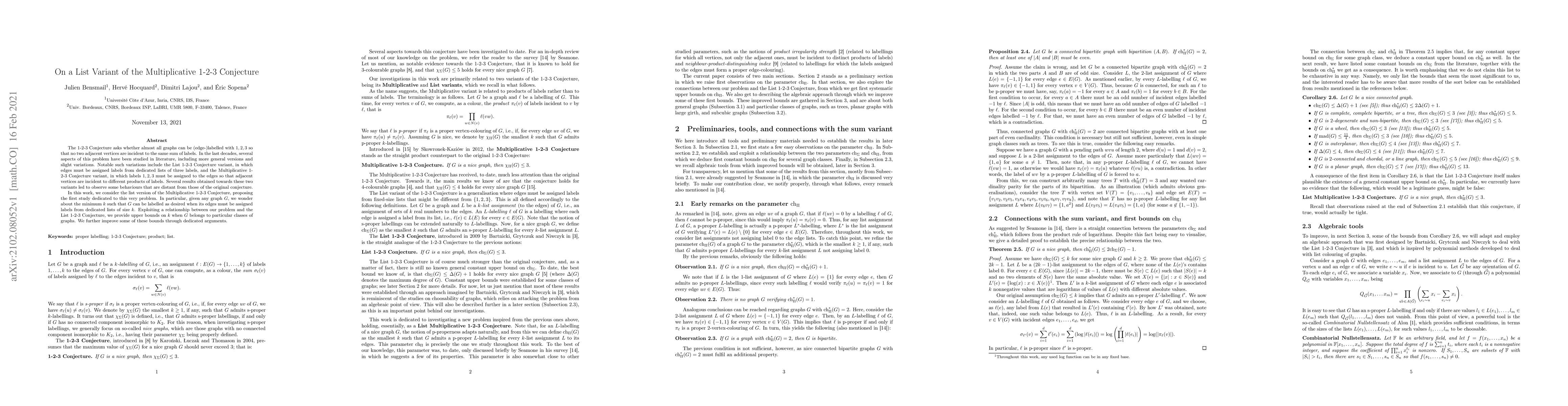 The 1-2-3 Conjecture asks whether almost all graphs can be (edge-)labelled with $1,2,3$ so that no two adjacent vertices are incident to the same sum of labels. In the last decades, several aspects of this problem have been studied in literature, including more general versions and slight variations. Notable such variations include the List 1-2-3 Conjecture variant, in which edges must be assigned labels from dedicated lists of three labels, and the Multiplicative 1-2-3 Conjecture variant, in which labels~$1,2,3$ must be assigned to the edges so that adjacent vertices are incident to different products of labels. Several results obtained towards these two variants led to observe some behaviours that are distant from those of the original conjecture. In this work, we consider the list version of the Multiplicative 1-2-3 Conjecture, proposing the first study dedicated to this very problem. In particular, given any graph $G$, we wonder about the minimum~$k$ such that $G$ can be labelled as desired when its edges must be assigned labels from dedicated lists of size~$k$. Exploiting a relationship between our problem and the List 1-2-3 Conjecture, we provide upper bounds on~$k$ when $G$ belongs to particular classes of graphs. We further improve some of these bounds through dedicated arguments.