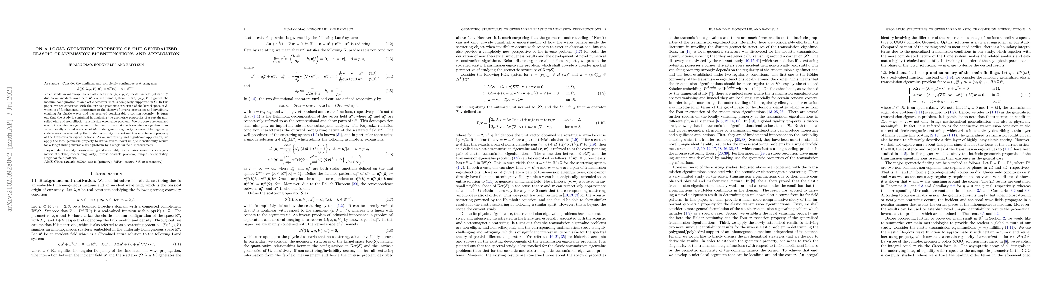 Researchers studied the geometric structure of elastic wave scattering patterns and found that transmission eigenfunctions vanish at corners under certain regularity criteria, leading to novel unique identifiability results for a single far-field measurement.