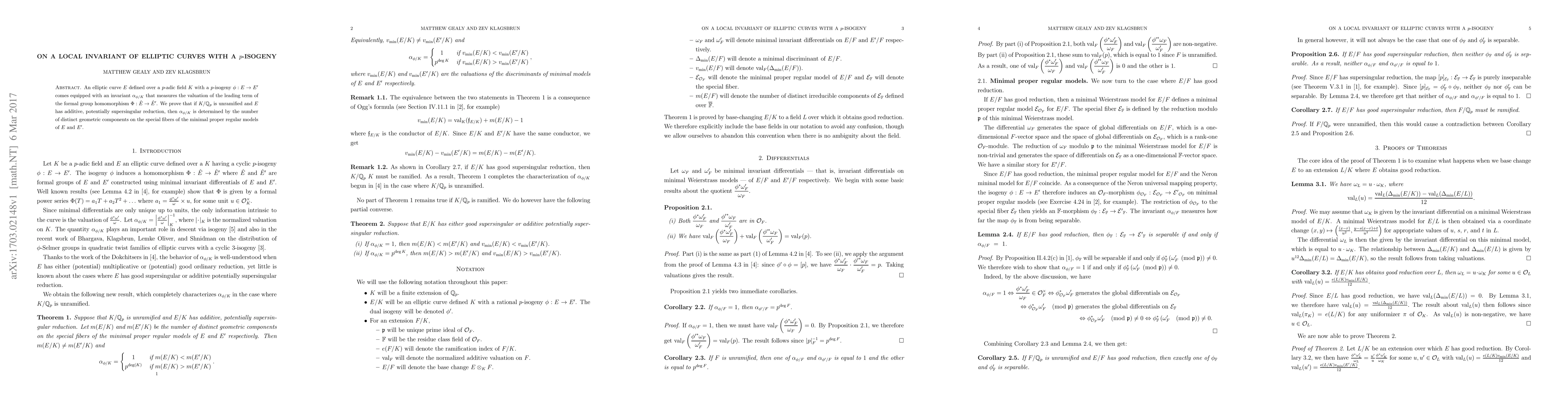 A new invariant measures the valuation of a formal group homomorphism for elliptic curves with a p-isogeny, showing it's determined by the number of distinct geometric components on special fibers.