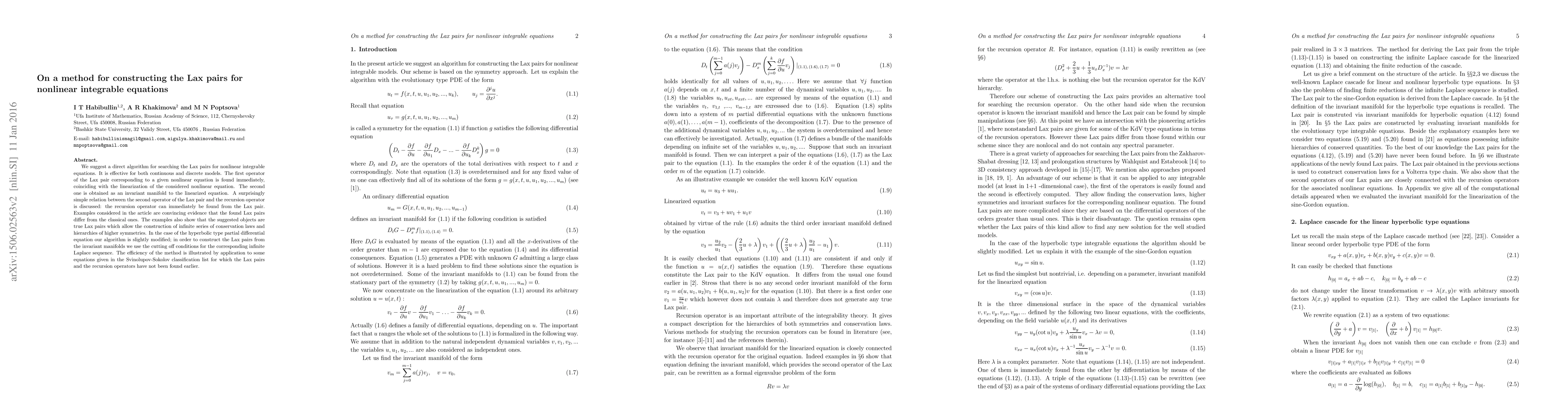 We suggest a direct algorithm for searching the Lax pairs for nonlinear integrable equations. It is effective for both continuous and discrete models. The first operator of the Lax pair corresponding to a given nonlinear equation is found immediately, coinciding with the linearization of the considered nonlinear equation. The second one is obtained as an invariant manifold to the linearized equation. A surprisingly simple relation between the second operator of the Lax pair and the recursion operator is discussed: the recursion operator can immediately be found from the Lax pair. Examples considered in the article are convincing evidence that the found Lax pairs differ from the classical ones. The examples also show that the suggested objects are true Lax pairs which allow the construction of infinite series of conservation laws and hierarchies of higher symmetries. In the case of the hyperbolic type partial differential equation our algorithm is slightly modified; in order to construct the Lax pairs from the invariant manifolds we use the cutting off conditions for the corresponding infinite Laplace sequence. The efficiency of the method is illustrated by application to some equations given in the Svinolupov-Sokolov classification list for which the Lax pairs and the recursion operators have not been found earlier.