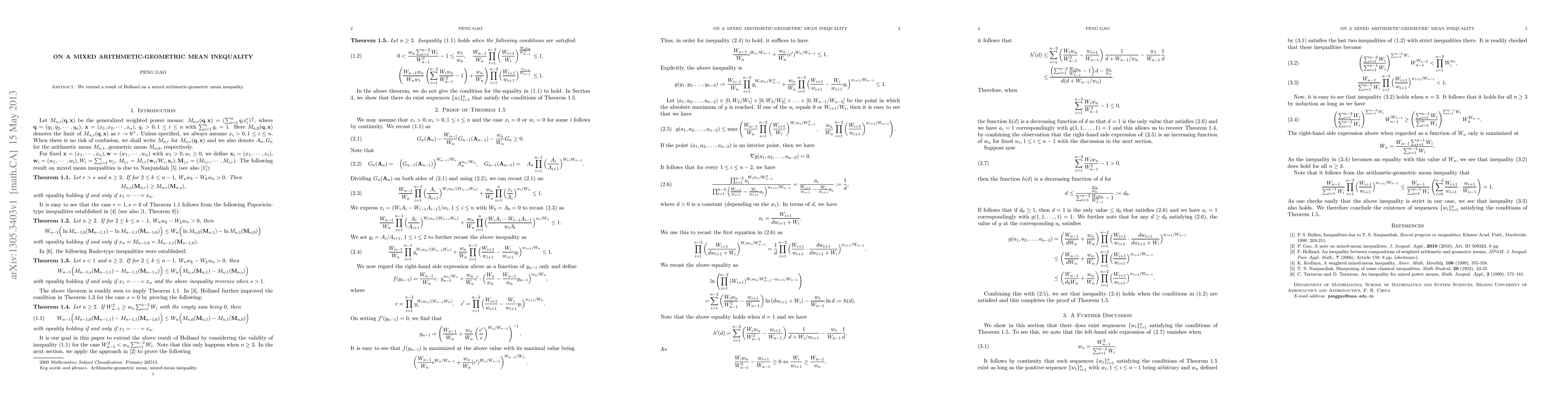 Summary: This paper extends Holland's result on a mixed arithmetic-geometric mean inequality, providing a deeper analysis and broader implications for the mathematical relationship between these means.