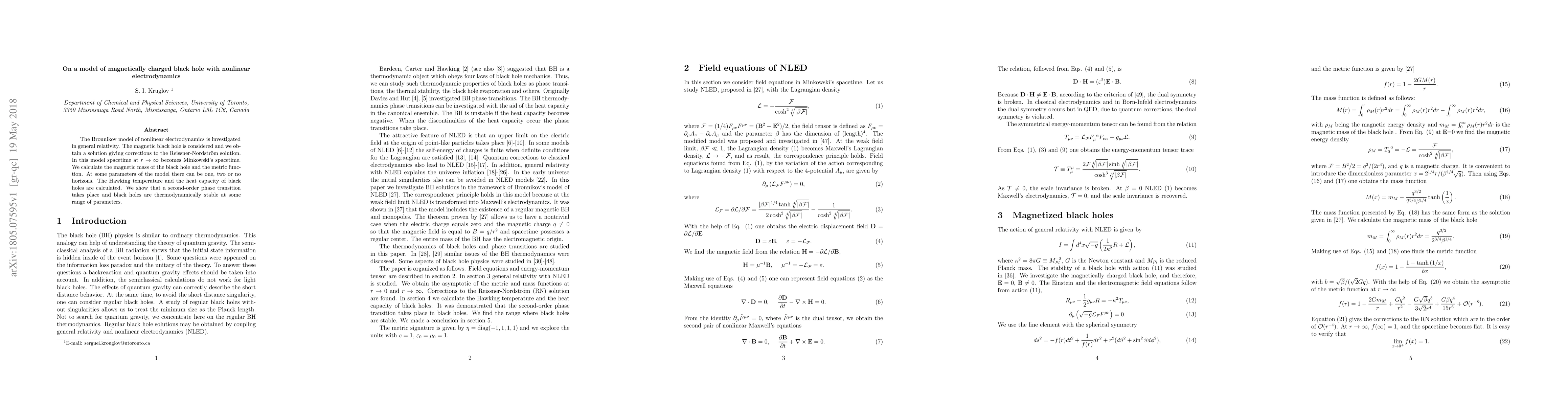 Researchers investigated a model of magnetically charged black holes using nonlinear electrodynamics, finding that spacetime approaches Minkowski's at infinity and allowing for multiple horizon configurations, as well as thermodynamic stability under certain conditions.