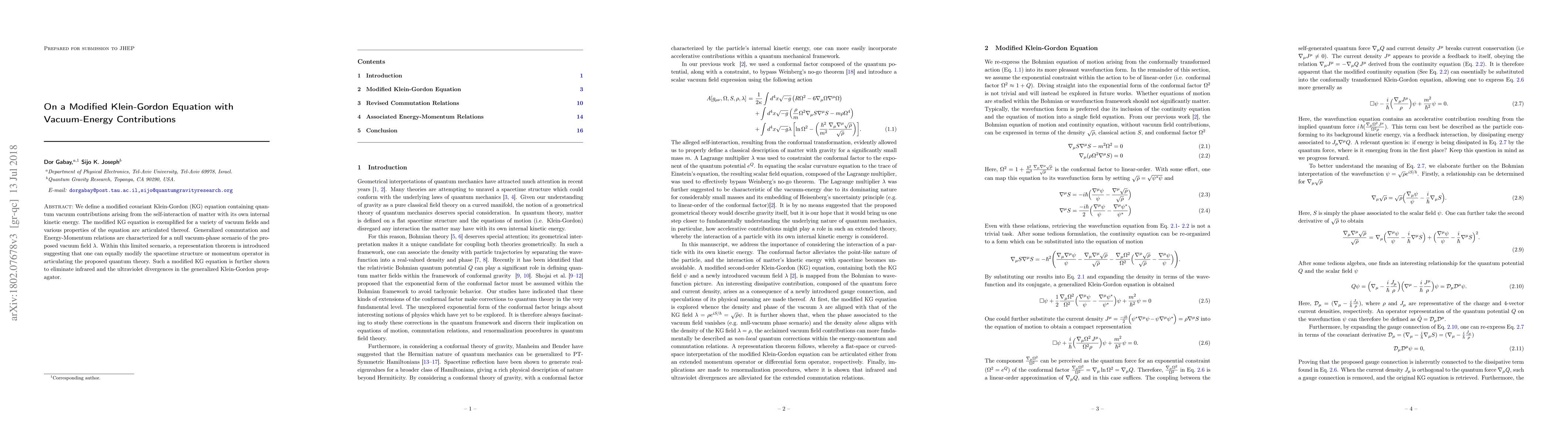 We define a modified covariant Klein-Gordon (KG) equation containing quantum vacuum contributions arising from the self-interaction of matter with its own internal kinetic energy. The modified KG equation is exemplified for a variety of vacuum fields and various properties of the equation are articulated thereof. Generalized commutation and Energy-Momentum relations are characterized for a null vacuum-phase scenario of the proposed vacuum field $\lambda$. Within this limited scenario, a representation theorem is introduced suggesting that one can equally modify the spacetime structure or momentum operator in articulating the proposed quantum theory. Such a modified KG equation is further shown to eliminate infrared and the ultraviolet divergences in the generalized Klein-Gordon propagator.