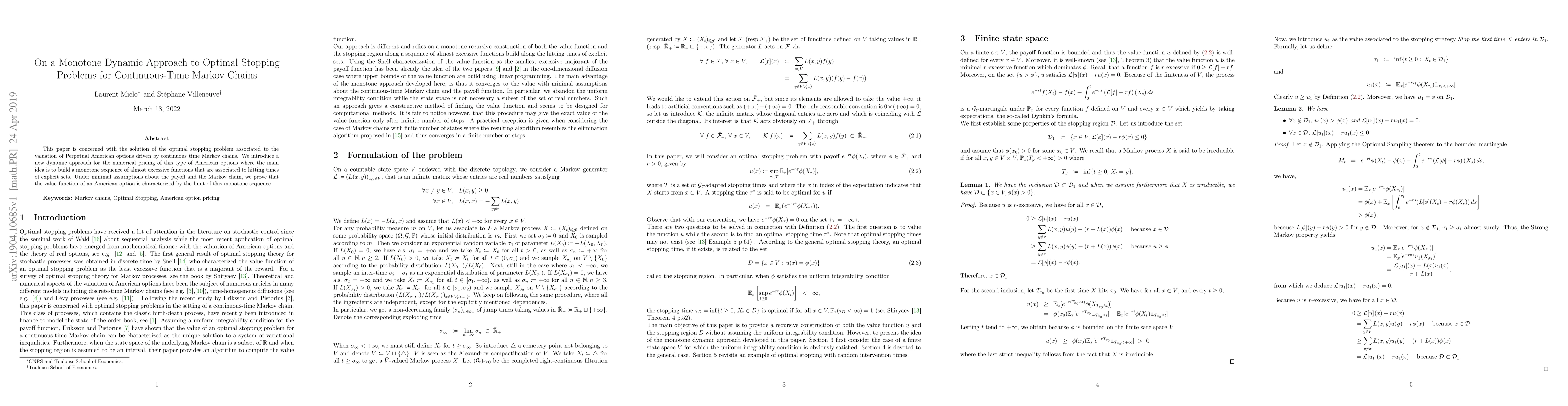 This paper introduces a new dynamic approach for solving optimal stopping problems in continuous-time Markov chains, focusing on Perpetual American options, and shows that the value function can be characterized as the limit of a monotone sequence of functions associated with hitting times.