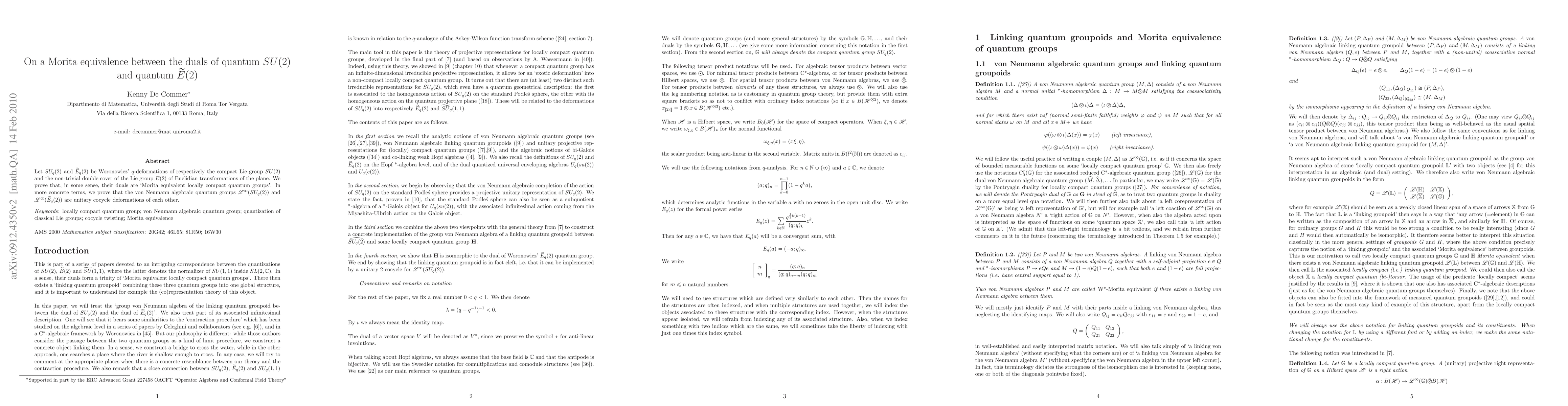 The research paper proves that the duals of quantum SU(2) and E(2) are Morita equivalent as unitary cocycle deformations, showing a connection between these two locally compact quantum groups.