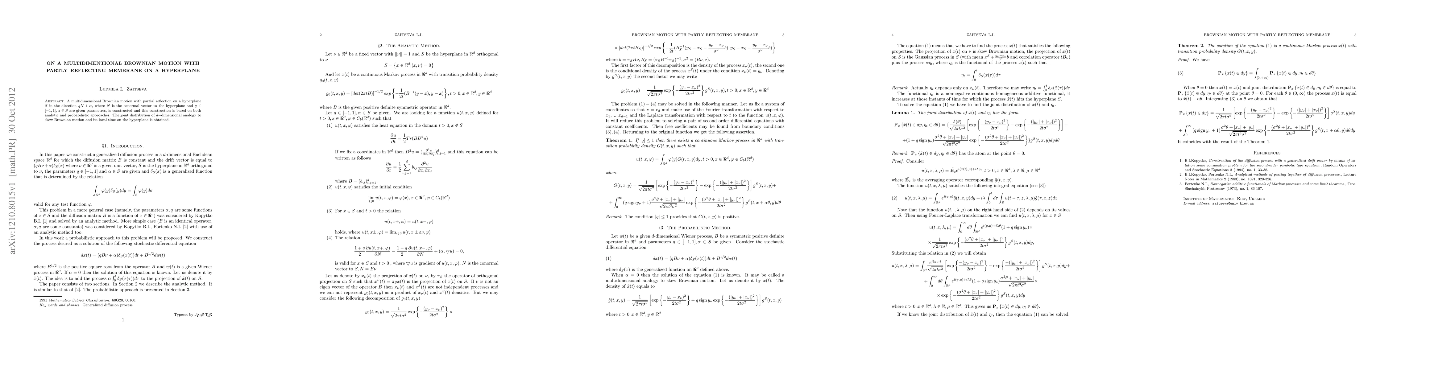 This paper constructs a multidimensional Brownian motion with partial reflection on a hyperplane, utilizing both analytic and probabilistic methods. It derives the joint distribution and local time of the resulting skew Brownian motion analogue.