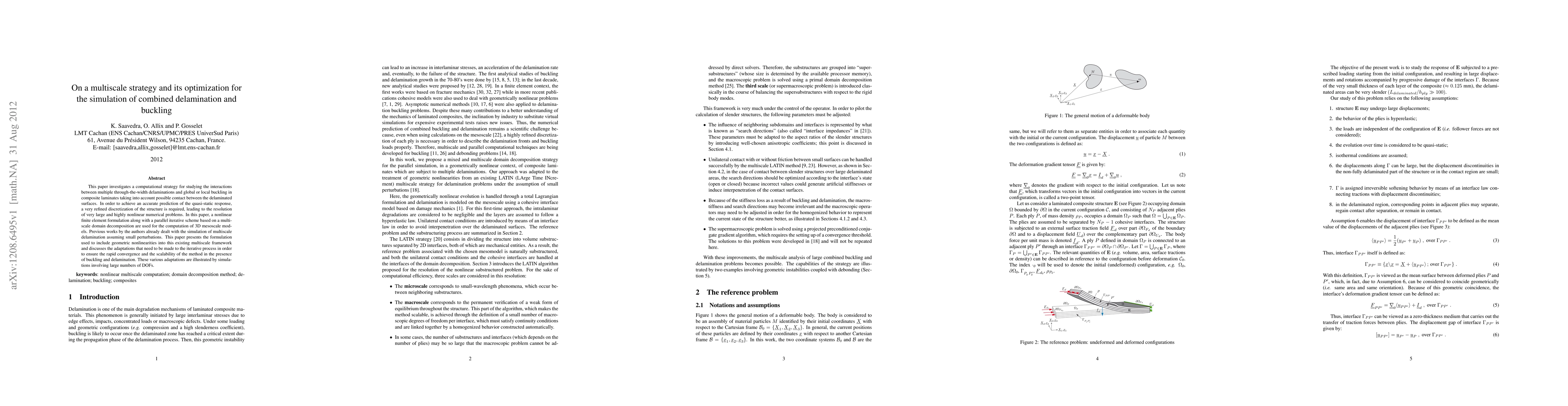 This paper develops a multiscale strategy optimized for simulating combined delamination and buckling in composite laminates, incorporating geometric nonlinearities and parallel iterative schemes for efficient computation. The method is validated through simulations demonstrating rapid convergence and scalability.