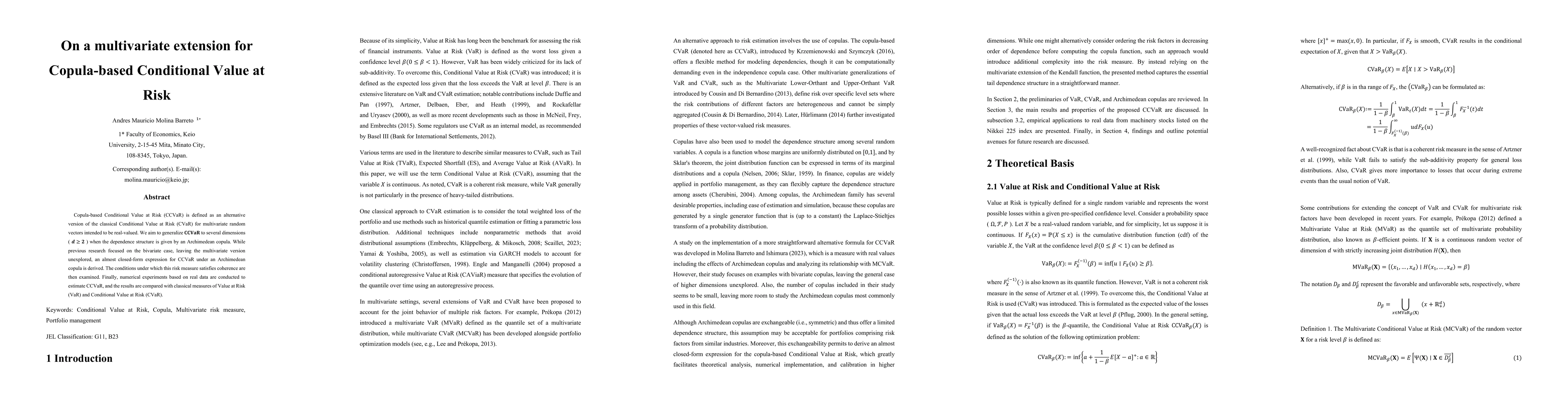 Copula-based Conditional Value at Risk (CCVaR) is defined as an alternative version of the classical Conditional Value at Risk (CVaR) for multivariate random vectors intended to be real-valued. We aim to generalize CCVaR to several dimensions (d>=2) when the dependence structure is given by an Archimedean copula. While previous research focused on the bivariate case, leaving the multivariate version unexplored, an almost closed-form expression for CCVaR under an Archimedean copula is derived. The conditions under which this risk measure satisfies coherence are then examined. Finally, numerical experiments based on real data are conducted to estimate CCVaR, and the results are compared with classical measures of Value at Risk (VaR) and Conditional Value at Risk (CVaR).