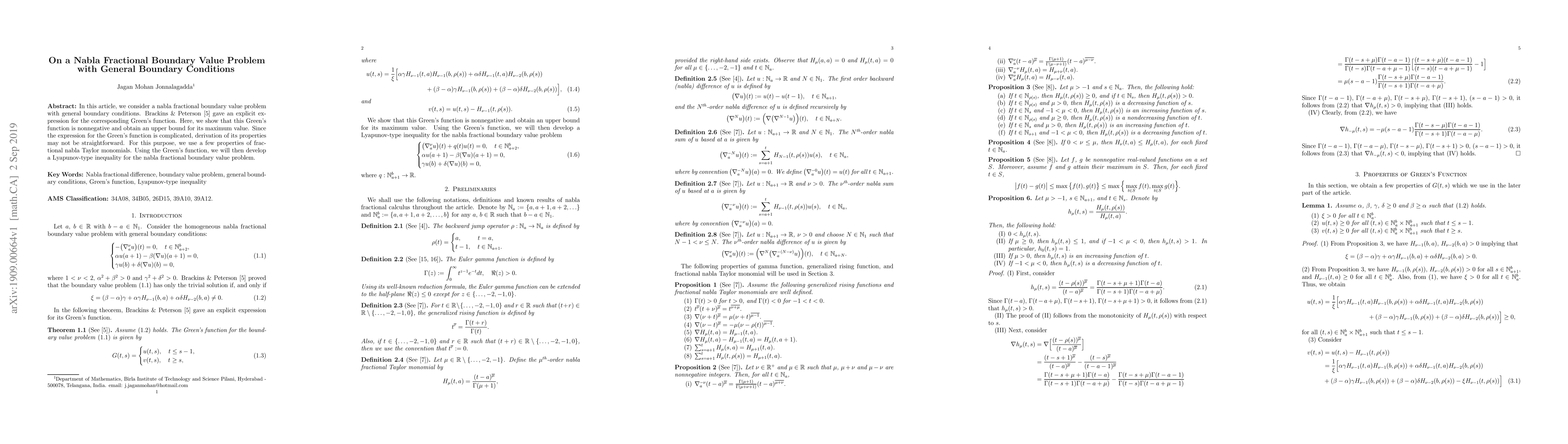 This paper investigates a nabla fractional boundary value problem with general boundary conditions, proving the nonnegativity and upper bound of the Green's function derived by Brackins & Peterson. It also develops a Lyapunov-type inequality using the properties of the Green's function.
