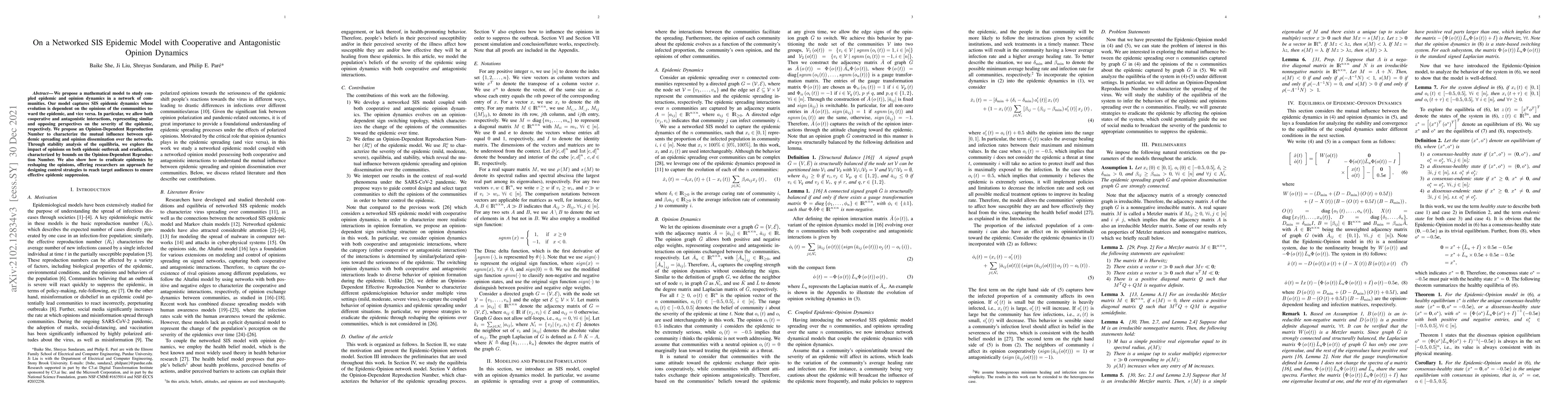 This paper proposes a mathematical model to study the interplay between epidemic dynamics and opinion formation in a networked community, considering both cooperative and antagonistic opinion interactions. It introduces an Opinion-Dependent Reproduction Number to quantify the mutual influence between epidemic spread and opinion dissemination, and explores strategies to eradicate epidemics through opinion reshaping.