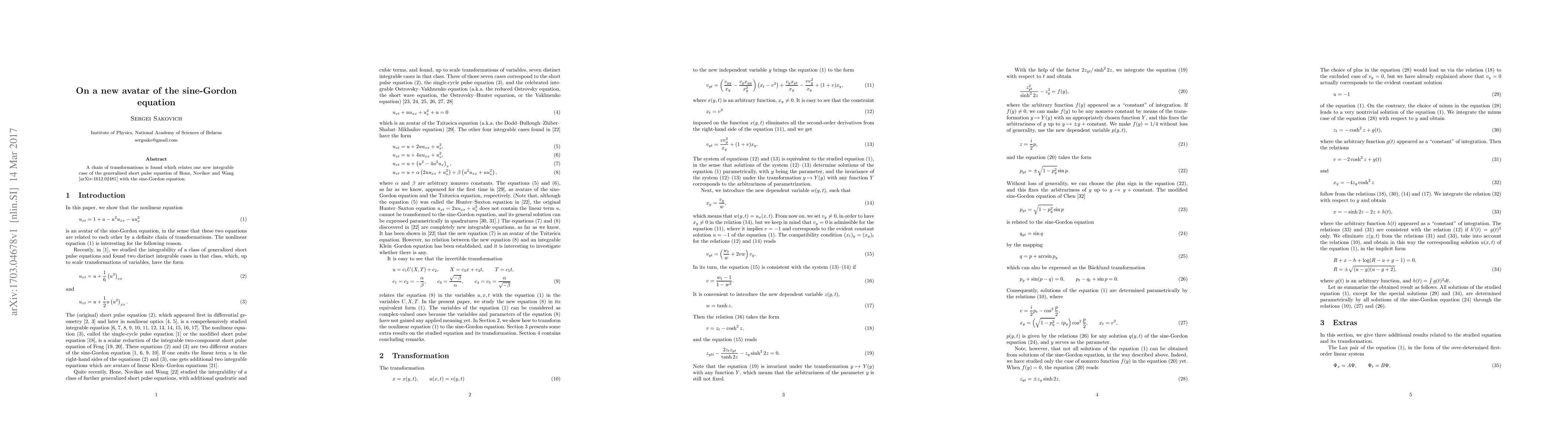 Summary: The paper presents a series of transformations linking a newly discovered integrable case of the generalized short pulse equation to the classical sine-Gordon equation, highlighting its significance in integrable systems.