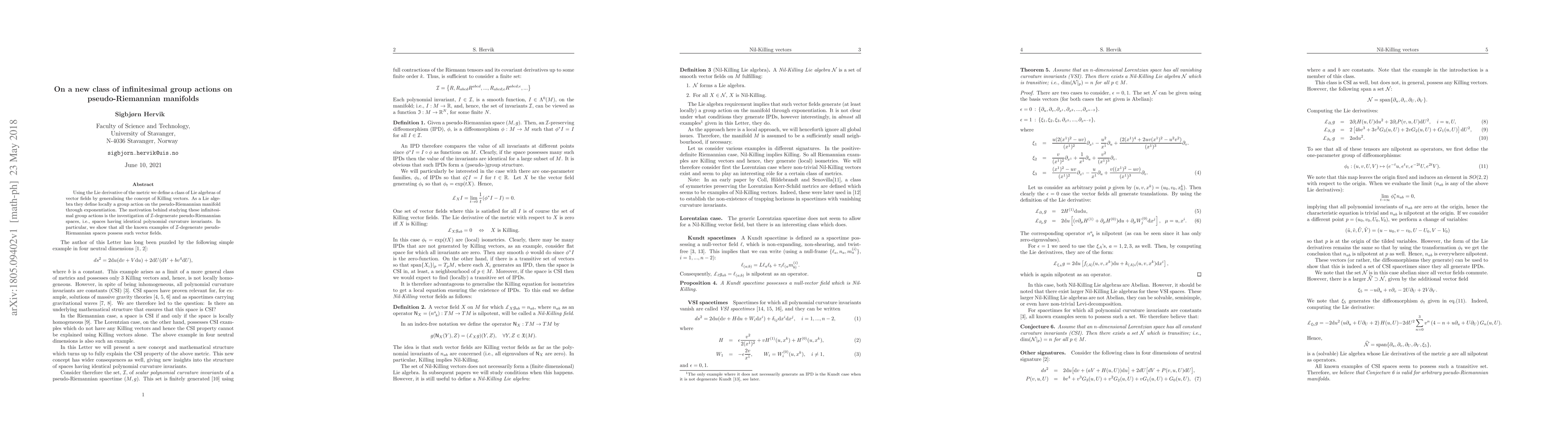 Using the Lie derivative of the metric we define a class of Lie algebras of vector fields by generalising the concept of Killing vectors. As a Lie algebra they define locally a group action on the pseudo-Riemannian manifold through exponentiation. The motivation behind studying these infinitesimal group actions is the investigation of $\mathcal{I}$-degenerate pseudo-Riemannian spaces, i.e., spaces having identical polynomial curvature invariants. In particular, we show that all the known examples of $\mathcal{I}$-degenerate pseudo-Riemannian spaces possess such vector fields.