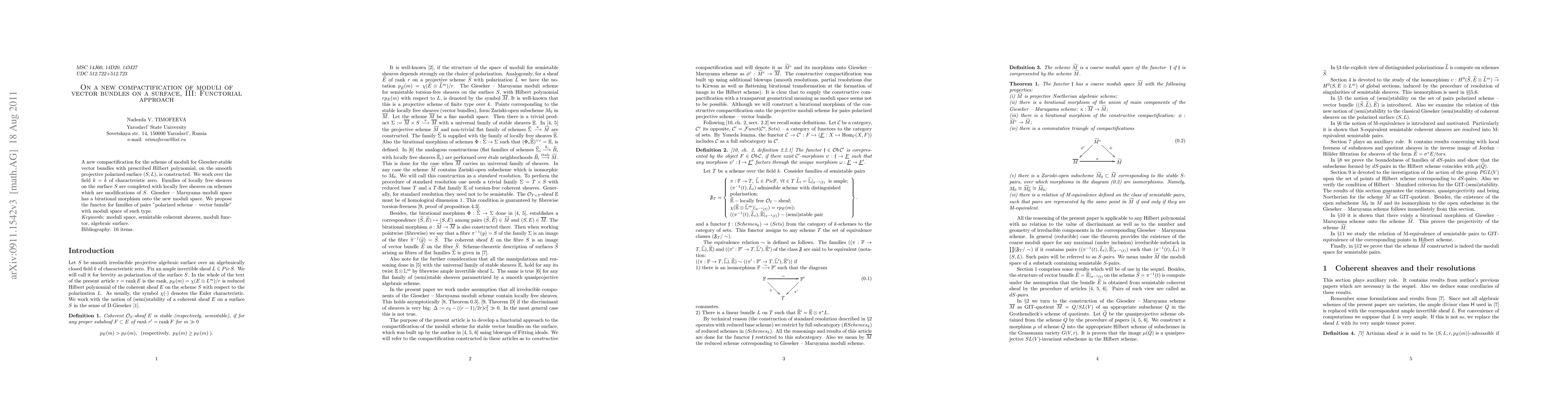 This paper constructs a new compactification for the moduli scheme of Gieseker-stable vector bundles on a smooth projective surface, utilizing modifications of the surface. It proposes a functor for families of polarized schemes and vector bundles, mapping to this new moduli space.