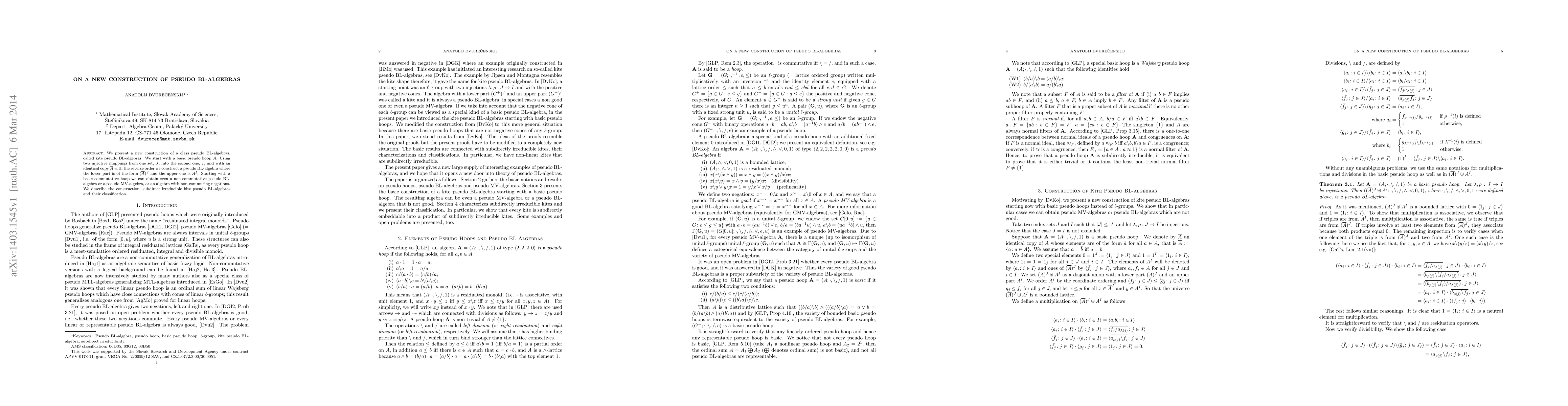 The construction of new pseudo-BL-algebras starting with basic pseudohoops and two sets I and J, and the characterization of subdirectly irreducible kites.