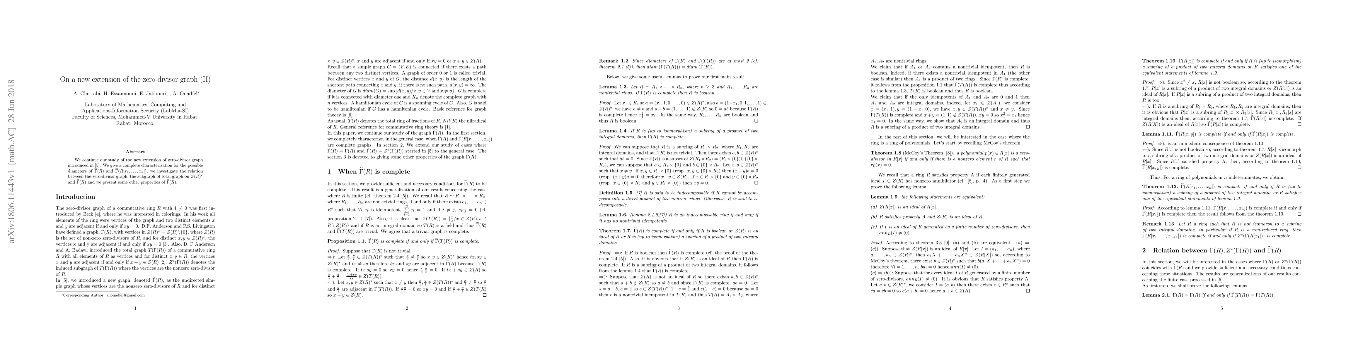 We continue our study of the new extension of zero-divisor graph. We give a complete characterization for the possible diameters of $\widetilde{\Gamma}(R)$ and $\widetilde{\Gamma}(R[x_1,\dots,x_n])$, we investigate the relation between the zero-divisor graph, the subgraph of total graph on $Z(R)^{\star}$ and $\widetilde{\Gamma}(R)$ and we present some other properties of $\widetilde{\Gamma}(R)$.