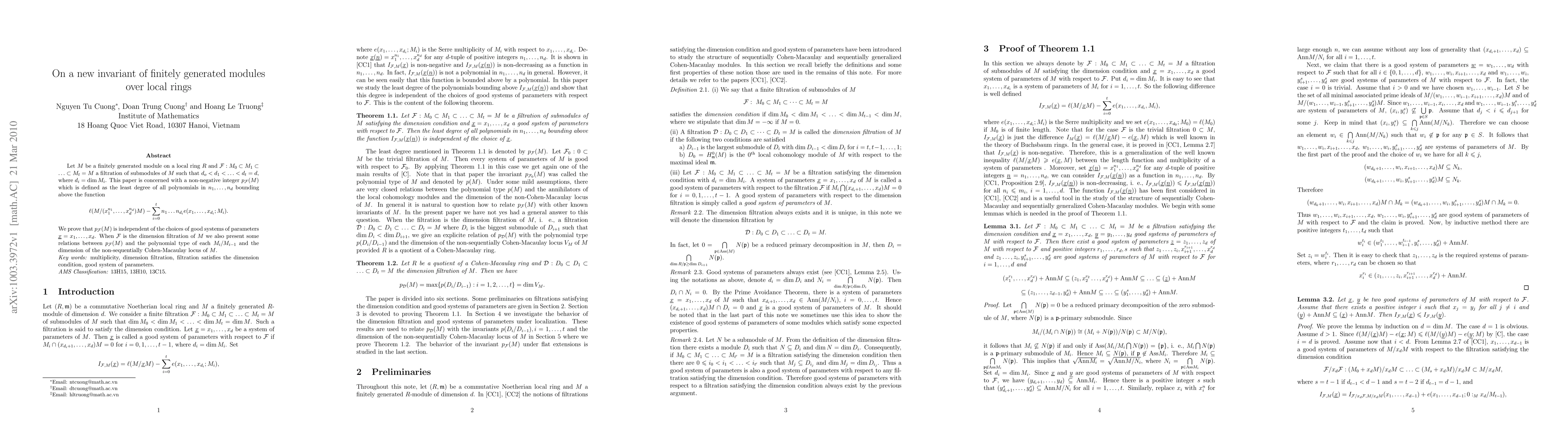Let $M$ be a finitely generated module on a local ring $R$ and $\F:
